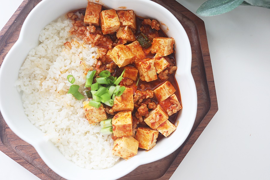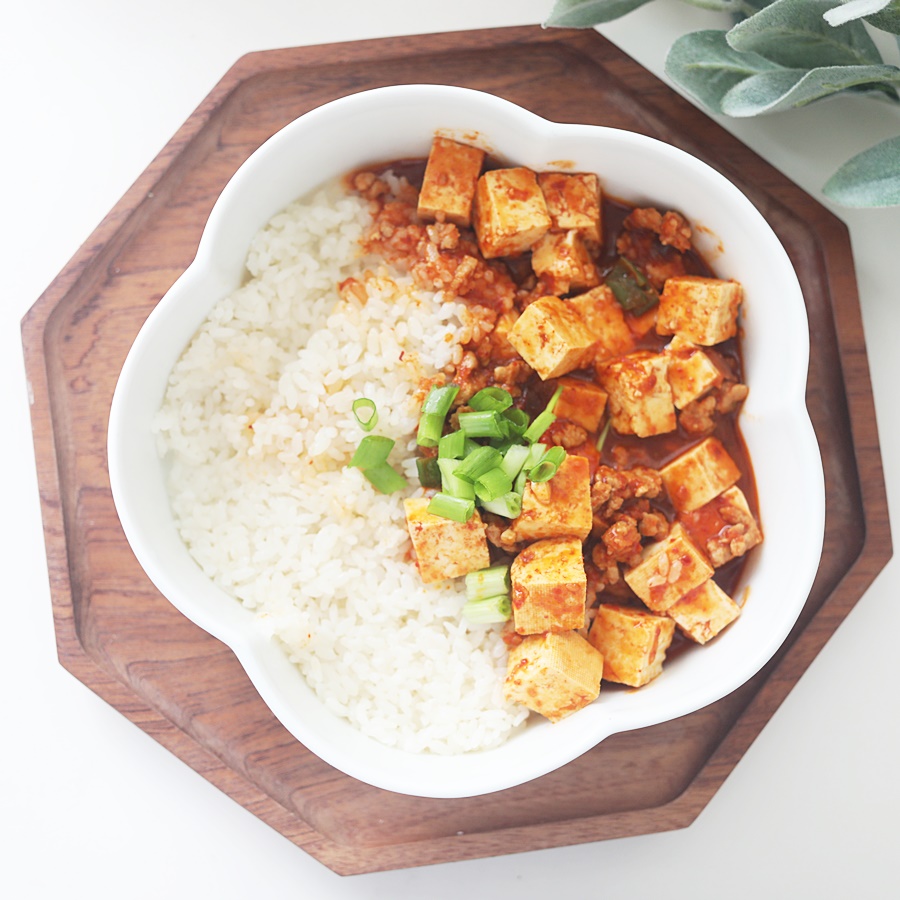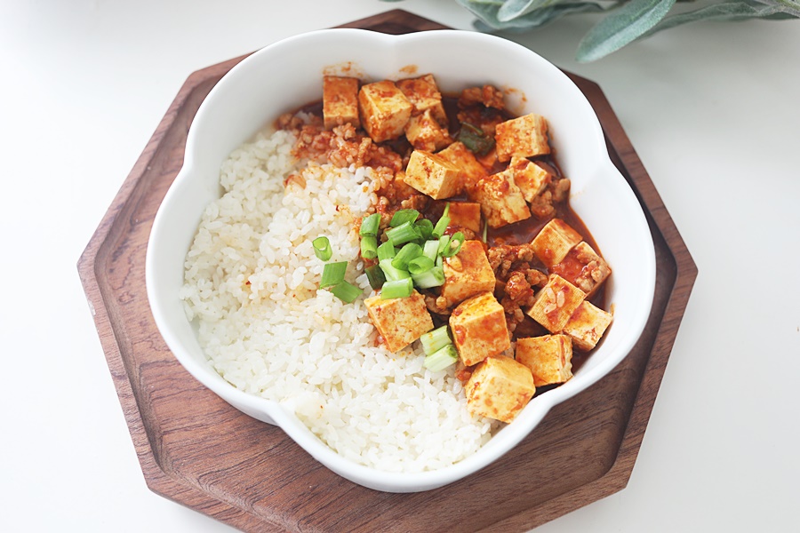 그릇에 밥을 담고 마파두부를 올려주고