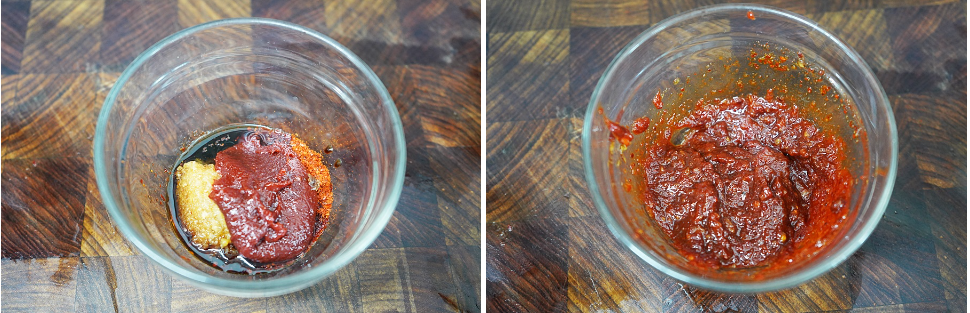 고추장, 황설탕, 굵은 고춧가루, 맛술, 진간장, 간 마늘을