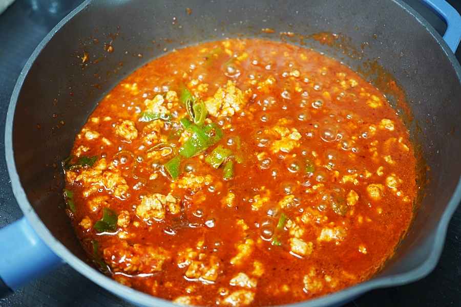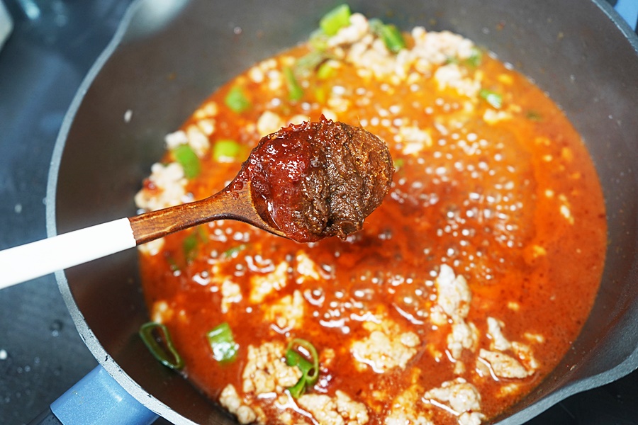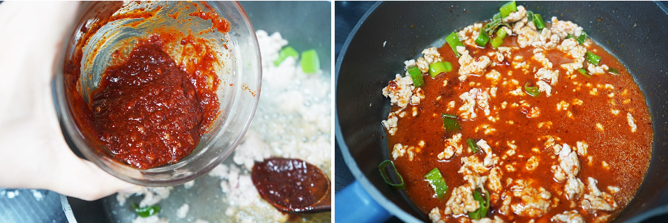 그다음 아까 만든 마파두부 양념장을 넣어주세요