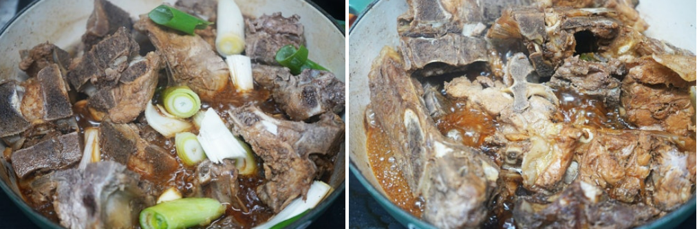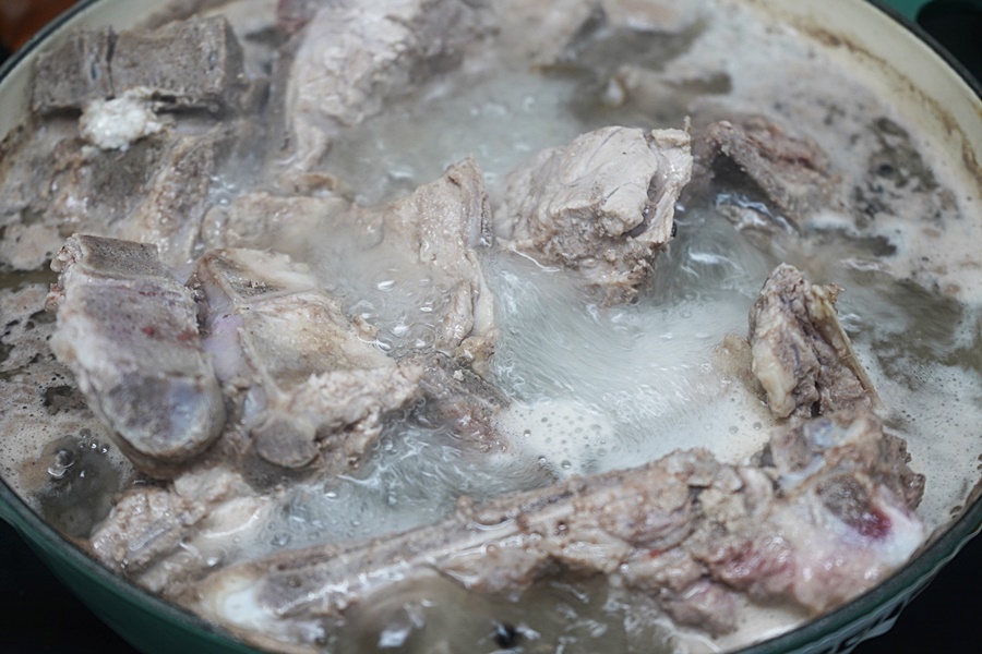 초벌 삶기한 등뼈를 깨끗한 냄비에 넣고,