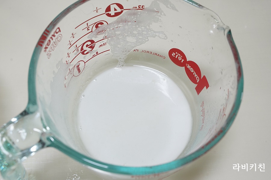 묽은 녹말가루를 넣은 모습이랍니다