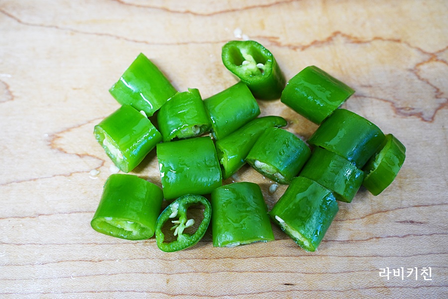 오이고추를 넣었는데 기호에 따라서 청양고추를 넣어줘도 좋고~ 오이를 넣어도 좋아요.