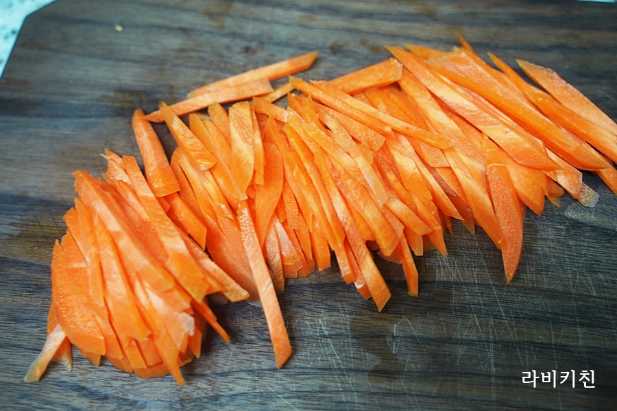 당근도 1개를 채 썰어서 준비합니다
