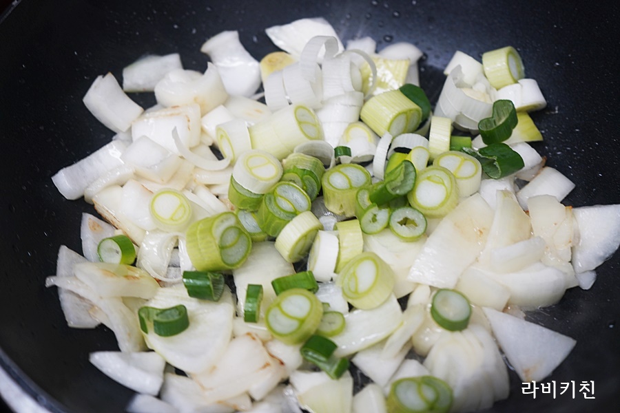 대파와 양파만 넣어도 양이 푸짐한 것을 볼 수 있어요