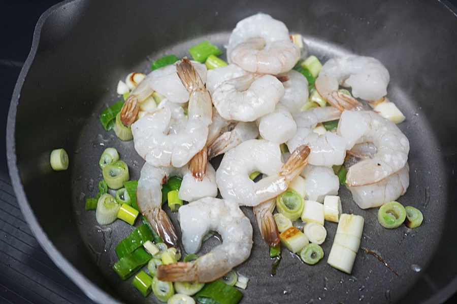그리고 새우를 넣고 새우가 익을 때까지 볶아주면 됩니다