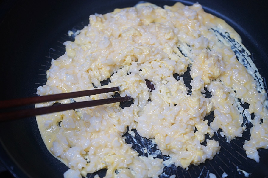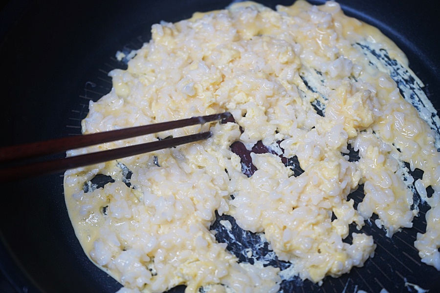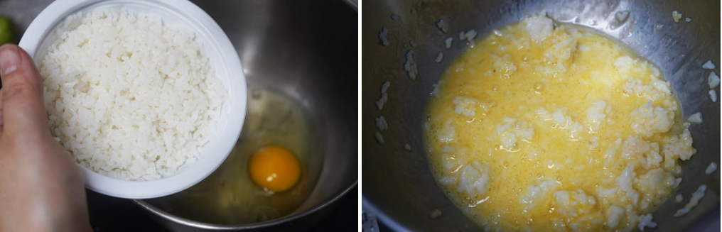 이렇게 하면 밥알이 계란에 코팅되면서 볶을 때 더욱 고슬고슬한 식감을 가질 수 있다고 해요.