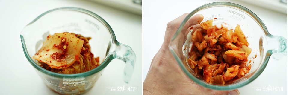 김치는 이렇게 넉넉한 그릇에 넣어두고 가위로 잘게 썰어줍니다 김치는 취향껏 넣어줍니다 1/4포기 정도 넣어준 것 같아요
