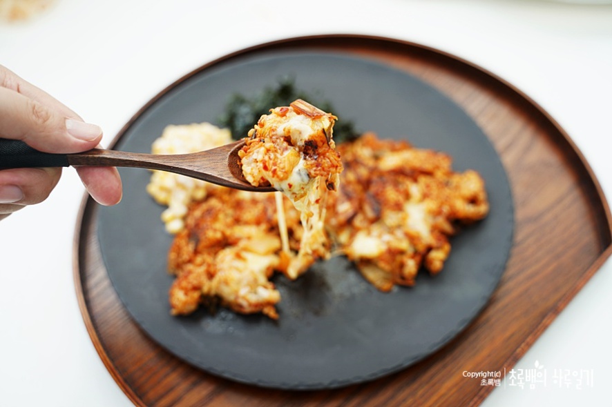 무엇보다 바로 먹으니 피자 치즈가 녹아서 밥이 어찌나 맛있던지~~ 역시 백종원님의 레시피는 엄지척하고 싶은데요 김치볶음밥과 또 다른 맛이라고 할까 개인적으로 너무나도 맛있게 먹었어요