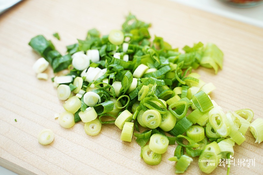 우선 백종원 김치밥에 들어갈 재료는 파기름인데요 파를 1대를 넉넉하게 잘라주었습니다 파가 많이 들어가지 않을까? 살짝 걱정하실 것 같은데 생각보다 파가 익으면 반 정도 줄어들기 때문에 걱정하지 않으셔도 될 것 같아요