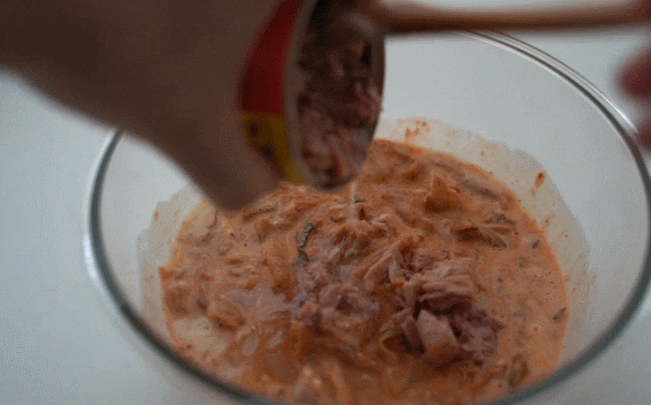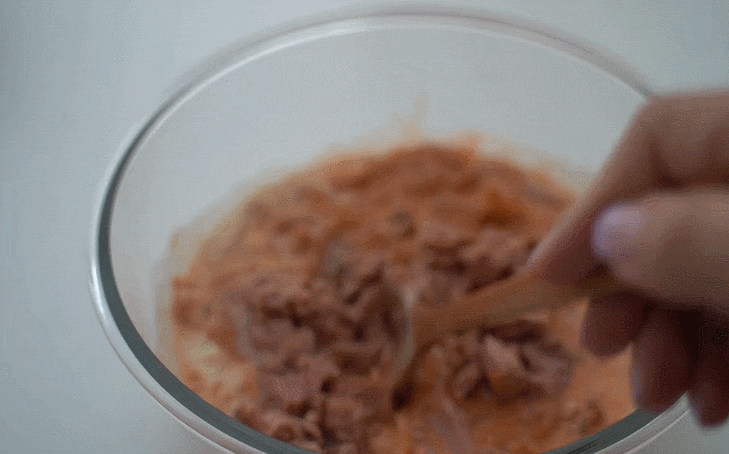 참치를 넣고 반죽이 잘 어우러지도록 잘 섞어줍니다