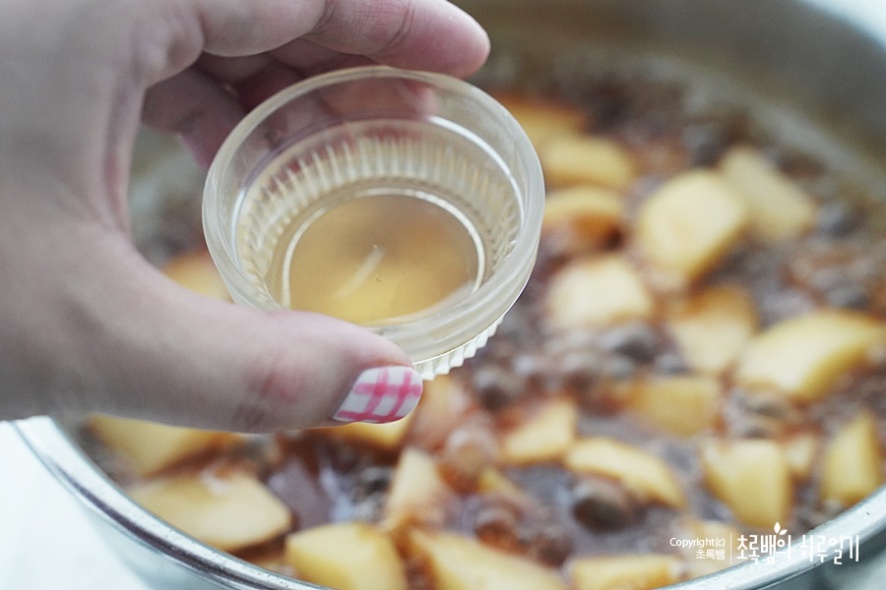 어느 정도 물이 줄어들면서감자가 거의 익었다고 생각이 들면이렇게 꿀 1스푼을 넣어줍니다