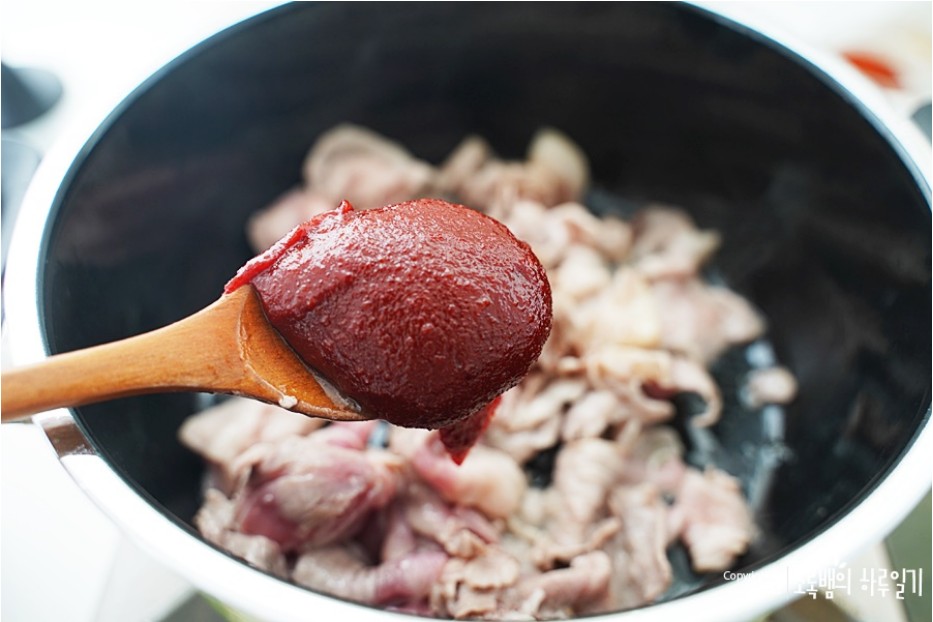 그리고 고추장 1숟갈을 넣어줍니다 고추장은 시판용을 사용했습니다