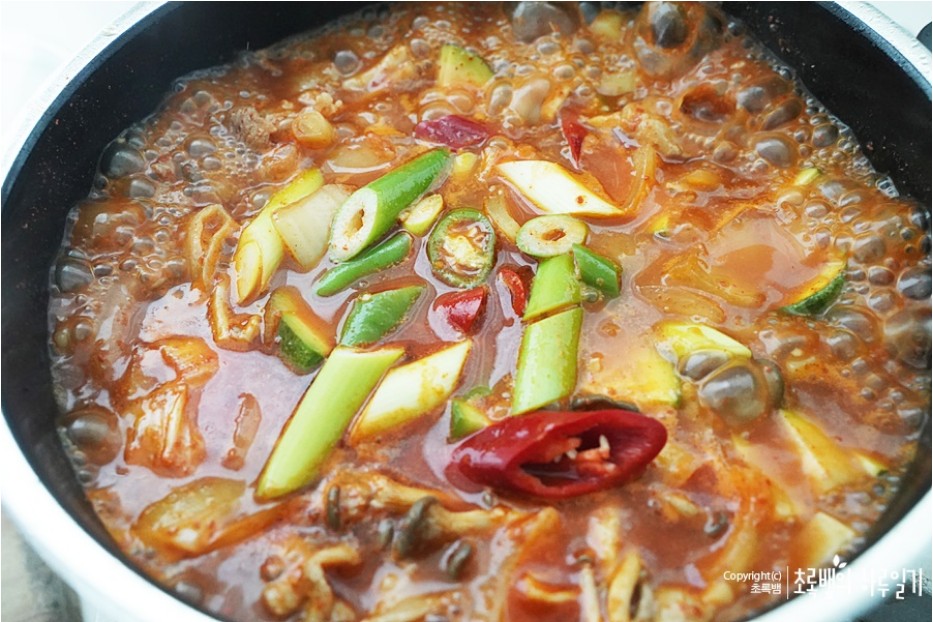 마지막으로 이렇게 청양고추, 홍고추를 넣고대파를 넣어주면 끝!!