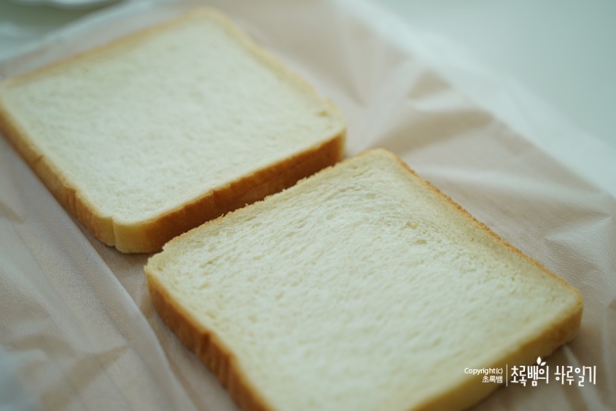 식빵을 바로 산 것이라 굽지 않고 사용했어요. 냉동실에 있던가 바삭하게 먹고 싶다면 팬에 굽거나 토스트기에 구워서 먹으면 될 것 같아요.