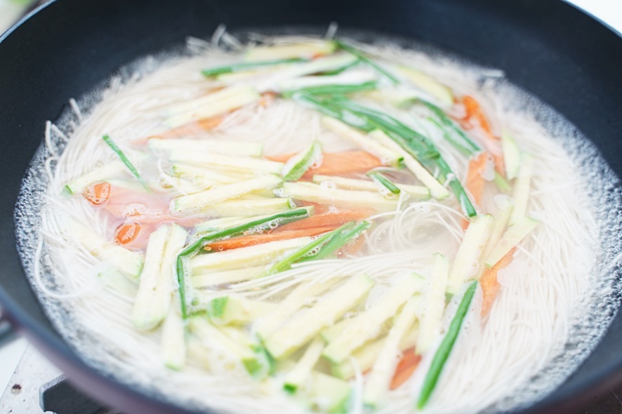 다시 국수가 끓어오르면 아까 준비했던 야채들을 넣고 끓여줍니다.