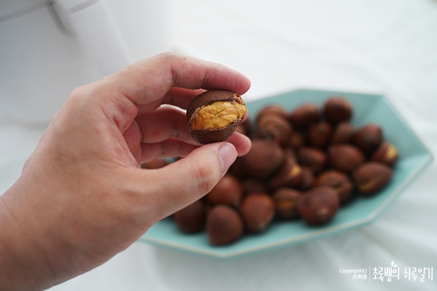 이제 군밤 사 먹지 않고 집에서 편하게 만들 수 있겠죠~~ 바로 먹으면 뜨거우니 좀 식혔다가 먹어보세요!! 껍질이 바삭바삭해서 그런지 껍질도 잘 까져서 맛있게 먹을 수 있었답니다.