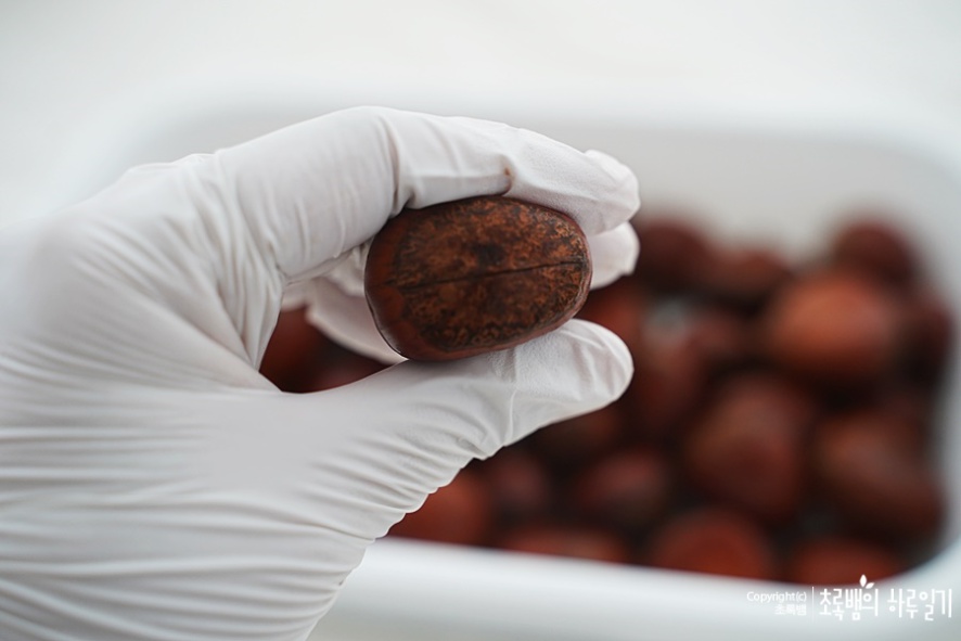 알이 꽉 찬 밤이라~ 왠지 섞은 것 없이 맛있을 것 같은 느낌인데요. 겉으로 봐서는 속이 썩었는지 잘 모르겠지만 한 가지 방법이 있답니다