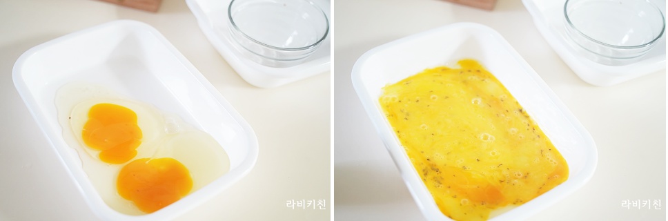 계란 2개를 풀어서 계란물을 만들어주는데요. 저는 파슬리를 추가했는데 생략 가능합니다.