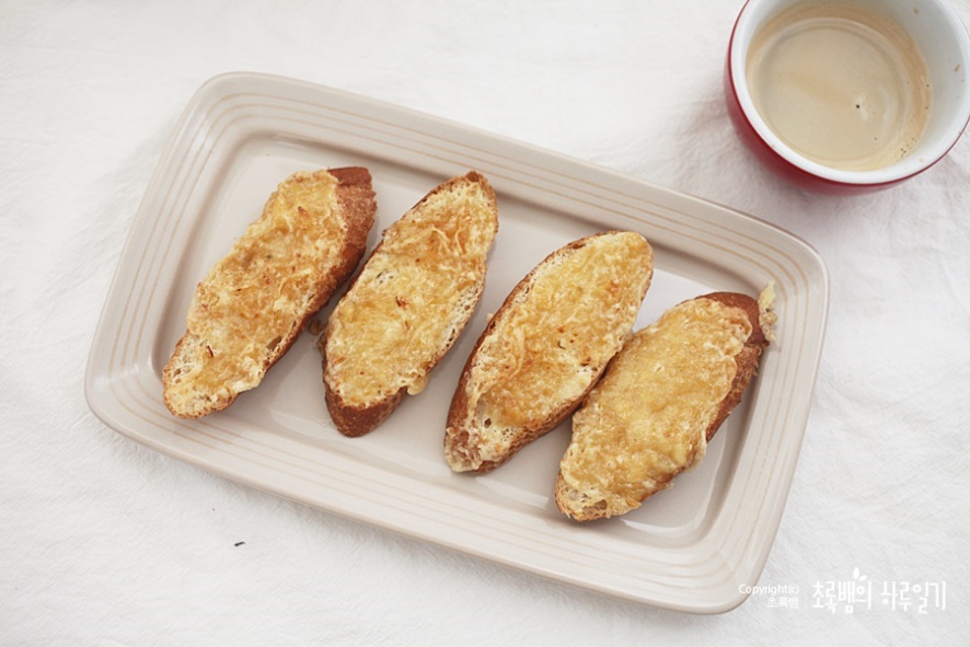 재료는 정말 간단하죠? 대략 이 정도의 양이면 식빵 2장 혹은 바게트빵 4~5장 정도의 양이 나온답니다. 저는 파슬리가루를 뿌리지 않았는데 뿌리면 빵집에서 파는 비주얼이 나오는데요 아무튼 재료는 빵만 있으면 집에 있는 재료랍니다.