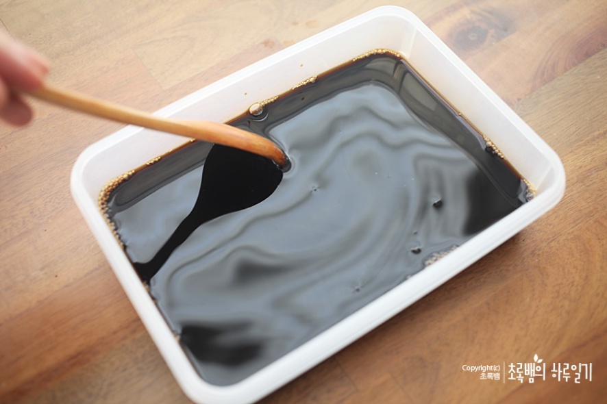 설탕이 들어가는 레시피도 있던데 저는 설탕은 넣지 않고 올리고당만 넣습니다. 그래야지 양념이 잘 녹거든요.이렇게 넣은 후 수저로 올리고당이 잘 녹도록 잘 저어줍니다.
