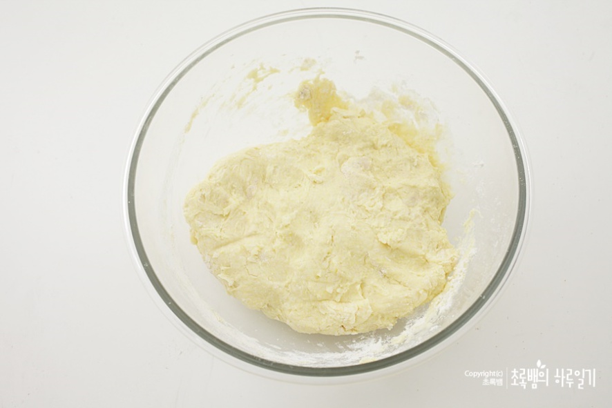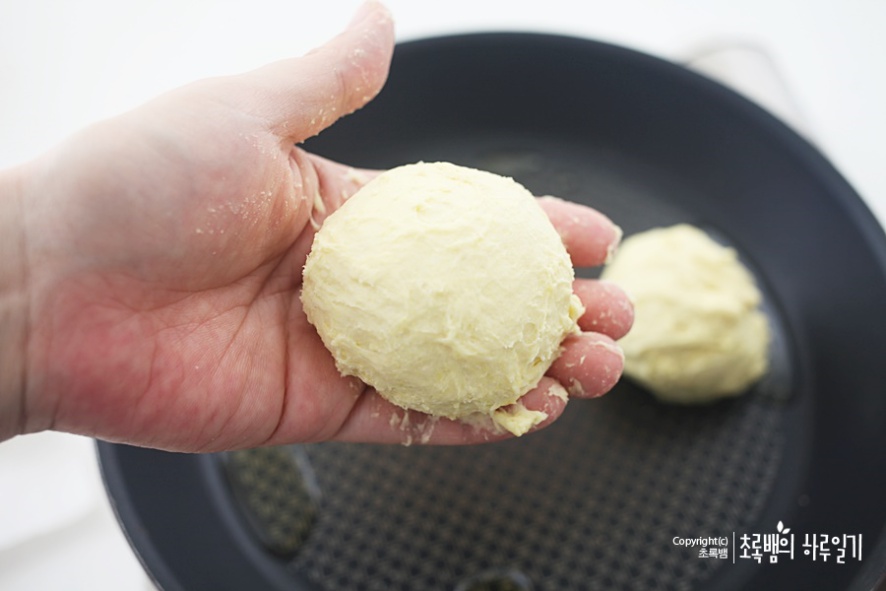 대략 반죽된 모습인데요. 바로 사용해도 된다고 되어 있지만 발효가 일어나도록 10~20분 정도 랩을 씌어서 보관해주면 보다 부드러운 반죽의 호떡 만들기를 할 수 있어요.