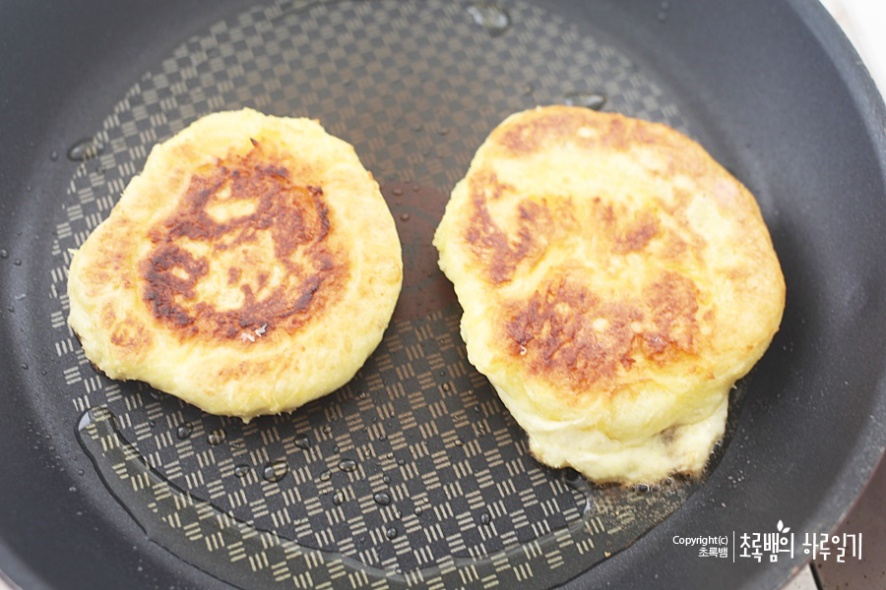 지지직 기름에 구워지는 소리가 어찌나 좋던지 몰라요. 살짝 구워주면 뒤집어 줍니다.