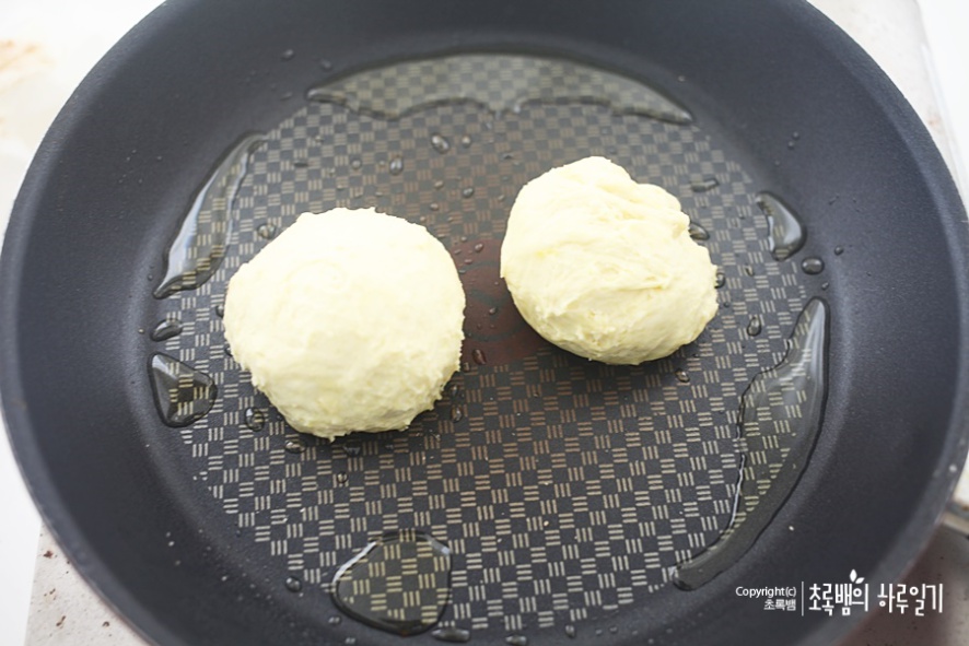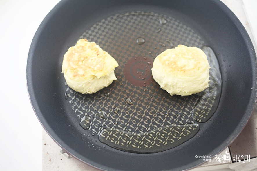 기름이나 혹은 버터 혹은 마가린을 넉넉하게 두른 후 호떡을 넣어줍니다.