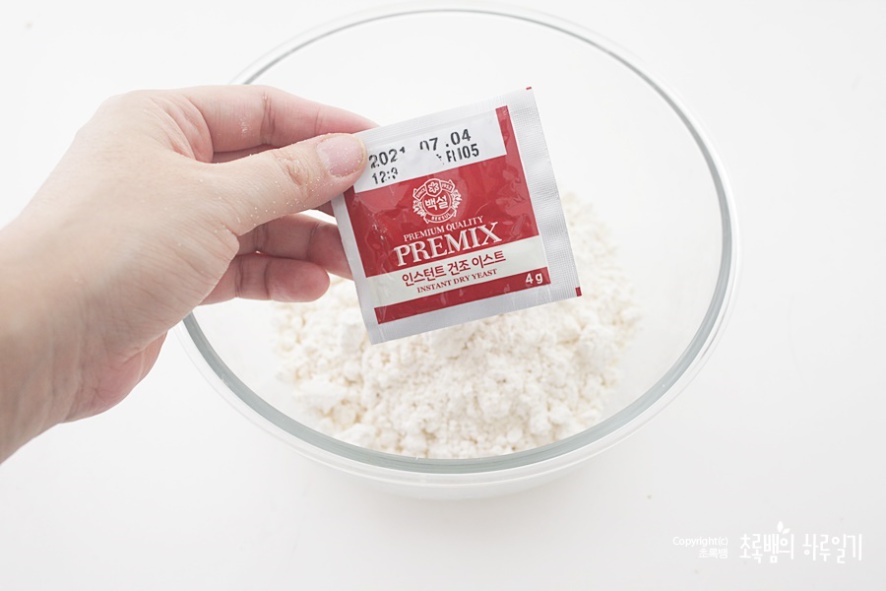 그다음 인스턴트 건조 이스트를 넣습니다