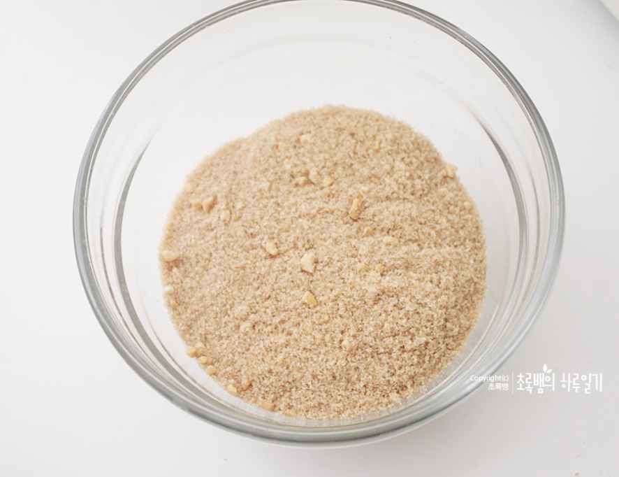 이제 반죽이 되었으니 호떡믹스의 속을 준비합니다. 열면 이렇게 설탕과 땅콩분태가 섞인 것을 볼 수 있어요 계피 향이 솔솔 나는 것 같기도 해요. 취향에 따라 씨앗을 넣어서 씨앗호떡을 만들어도 좋아요. 요즘에는 꼭 설탕이 아닌 잡채나 고구마 등등 다양한 속 재료를 추가해서 넣는 것도 많이 보았습니다.