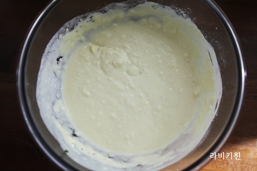 반죽이 좀 더 묽었으면 하면 물을 조금 더 넣어주면 좋아요