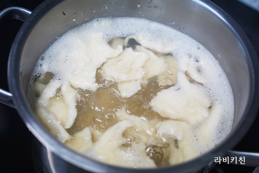 밀가루 반죽을 다 떼서 넣었습니다.