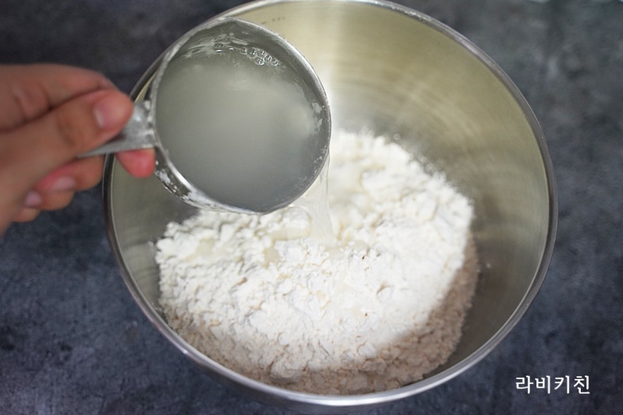 물과 밀가루의 비율은 1:2의 비율로 넣어주면 저는 반죽이 적당하더라고요.