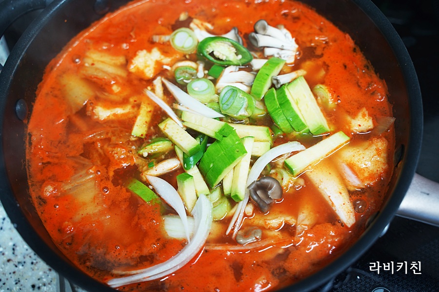 대파, 양파, 청양고추, 애호박을 넣은 후