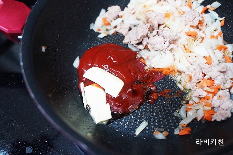 을 넣어준 후 오므라이스 소스를 잘 섞어주세요