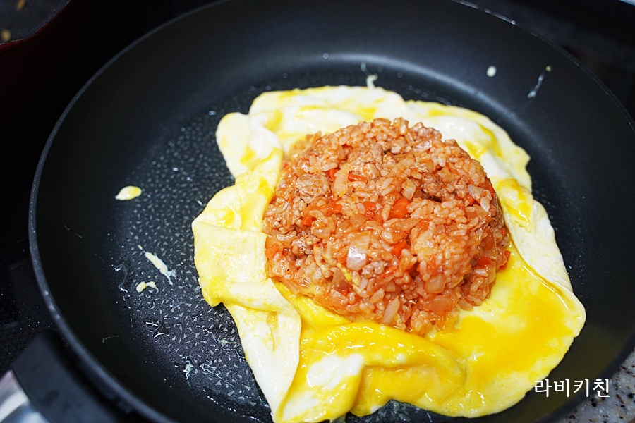 계란을 밥으로 감싸주세요