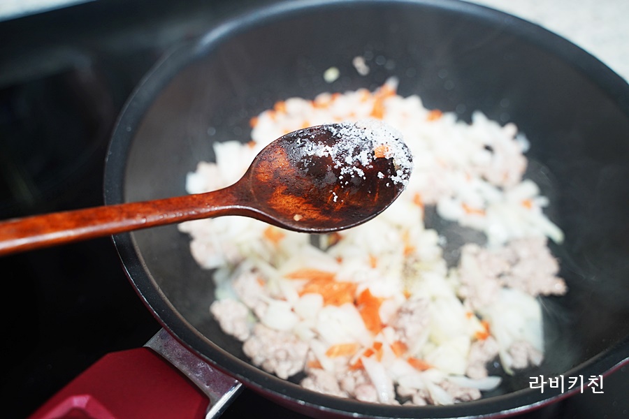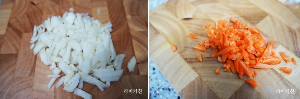 돼지고기 다짐육 1/3컵, 양파 1컵, 당근 2스푼