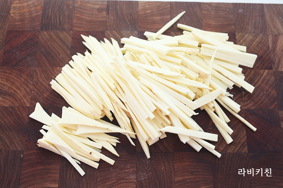 길쭉하게 얇게 썰어주면 좋습니다