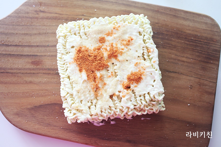 라면 1개, 설탕 1스푼, 마요네즈, 스프
