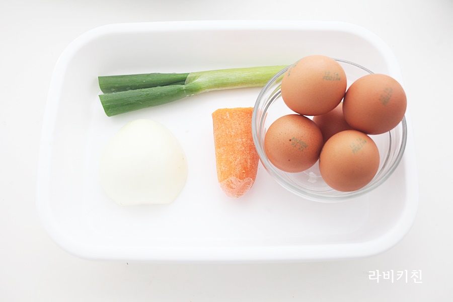 계란 5개, 대파, 양파, 당근, 소금, 설탕